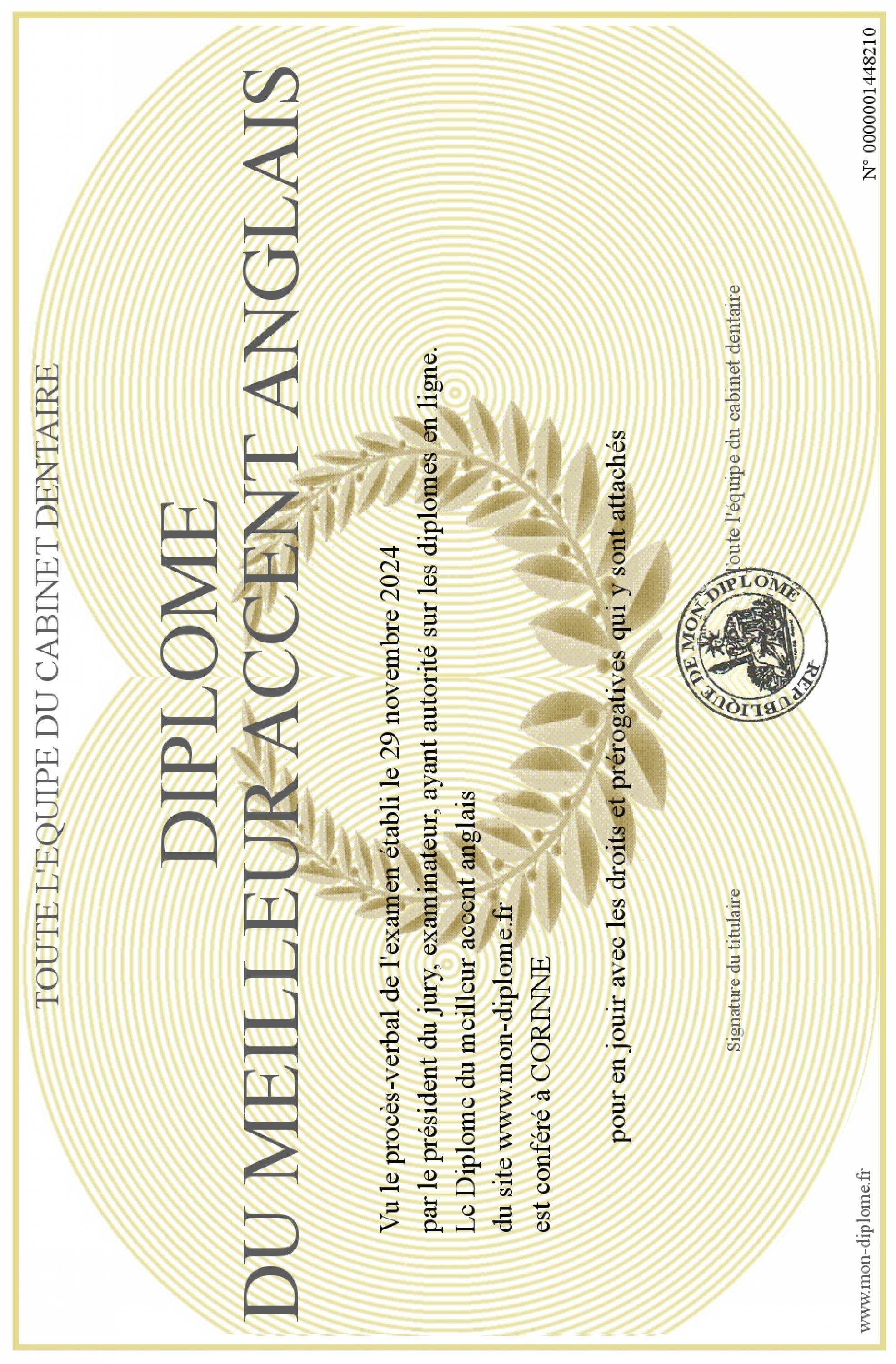 Envoyez par email votre Diplôme du meilleur accent anglais personalisé
