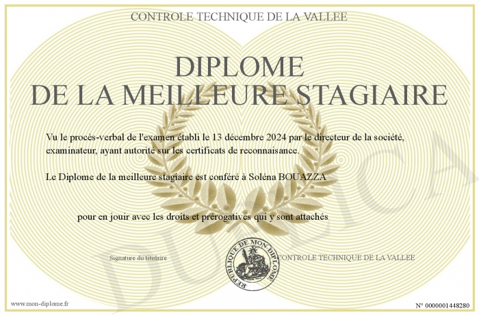 Envoyez par email votre Diplôme de la meilleure stagiaire personalisé