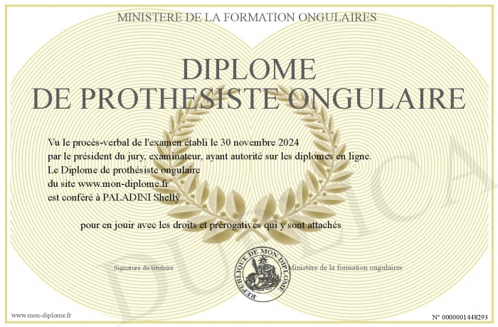 Envoyez par email votre Diplôme de prothésiste ongulaire personalisé