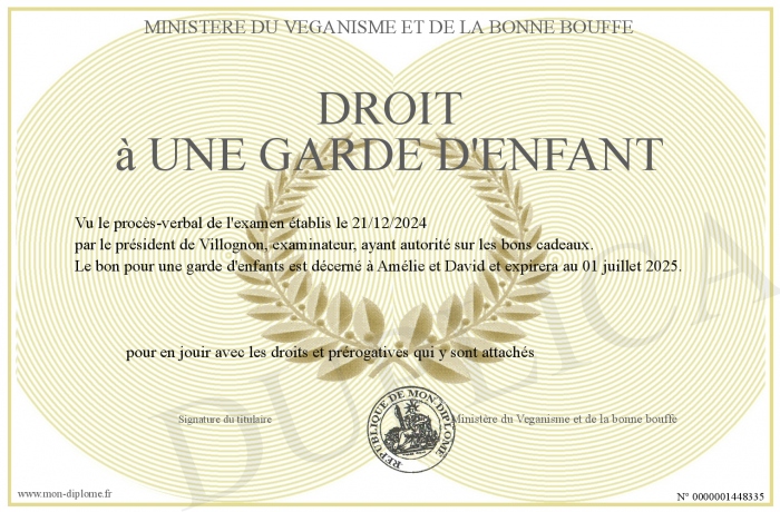 Envoyez par email votre droit à une garde d'enfant personalisé