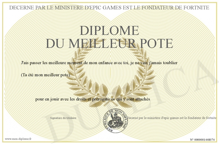 Envoyez par email votre Diplome du meilleur pote personalisé
