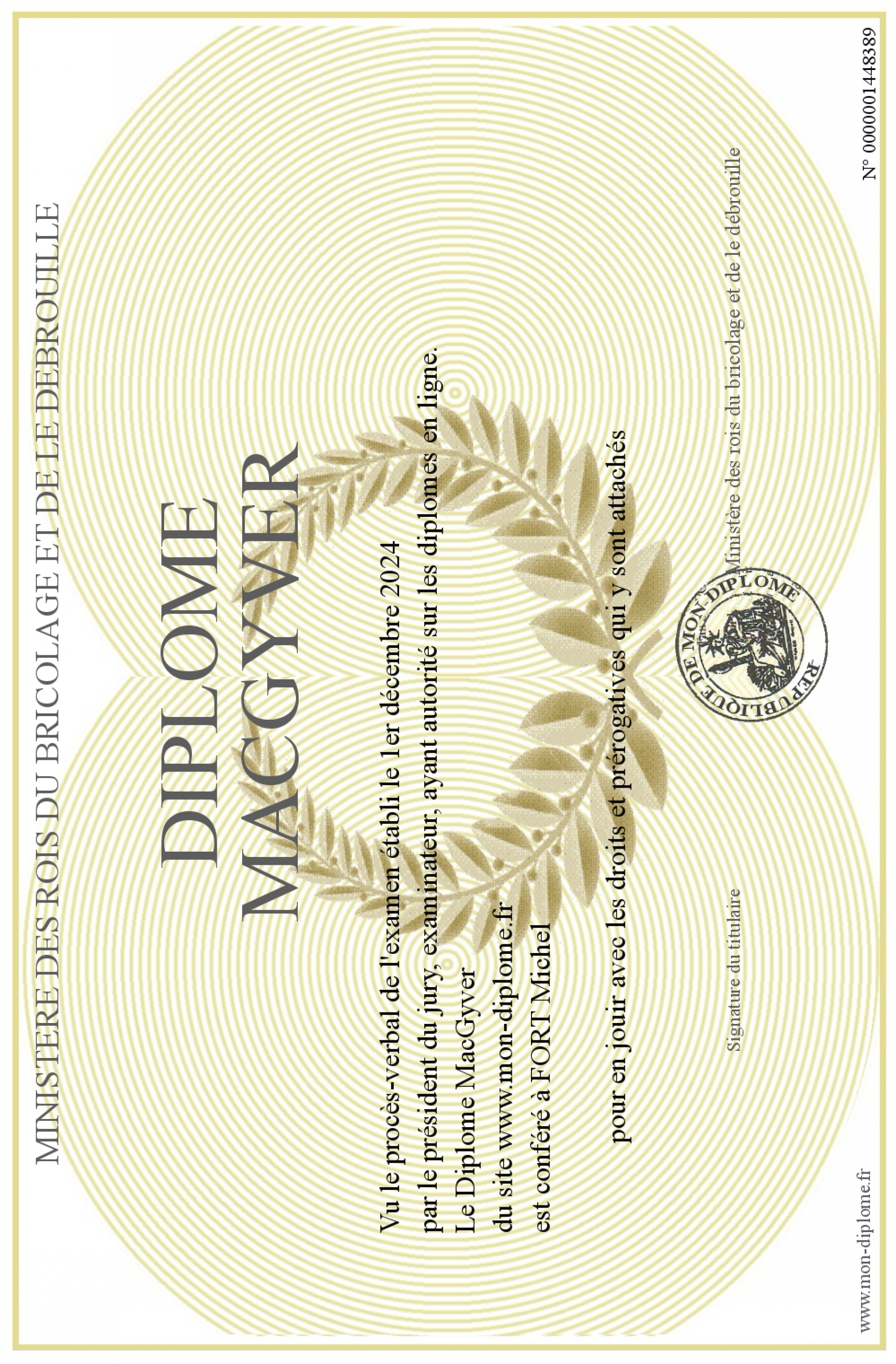 Envoyez par email votre Diplôme MacGyver personalisé