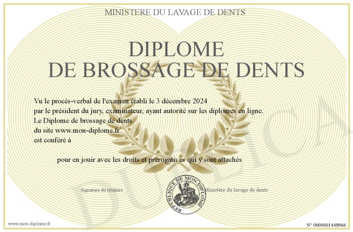 Envoyez par email votre Diplôme de brossage de dents personalisé