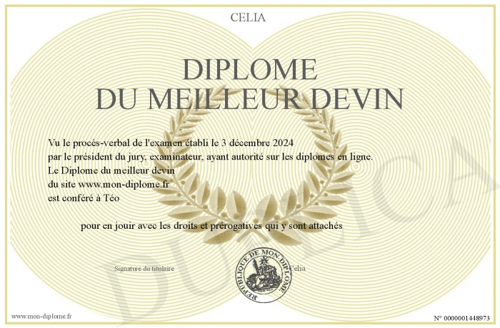 Envoyez par email votre Diplôme du meilleur devin personalisé