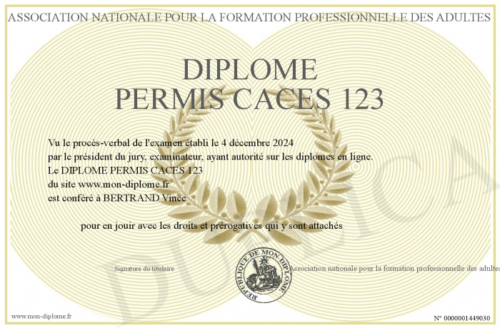 Envoyez par email votre DIPLOME PERMIS CACES 123 personalisé