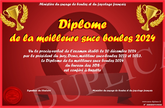 Envoyez par email votre Diplôme de la meilleure suce boules 2024 personalisé