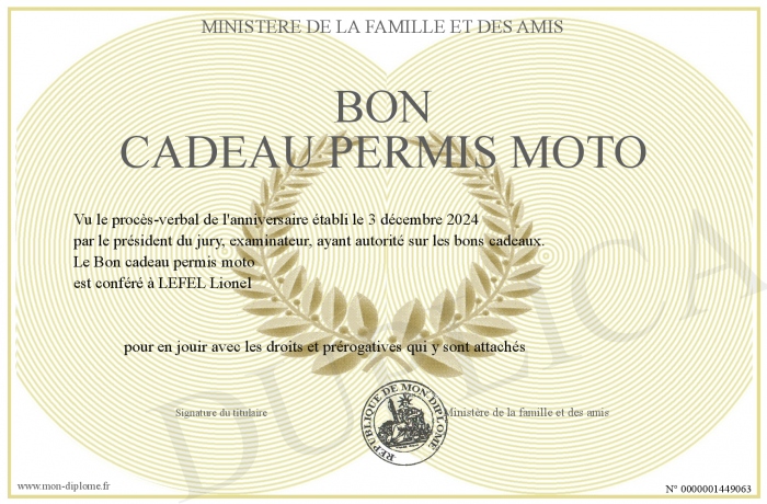 Envoyez par email votre Bon cadeau permis moto personalisé
