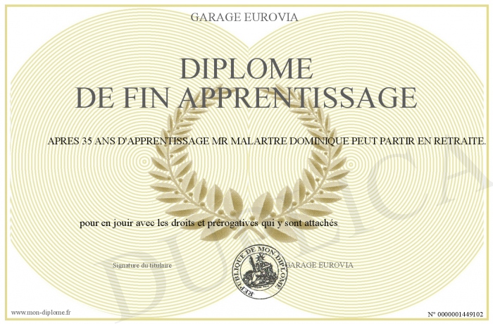 Envoyez par email votre Diplôme DE FIN APPRENTISSAGE personalisé