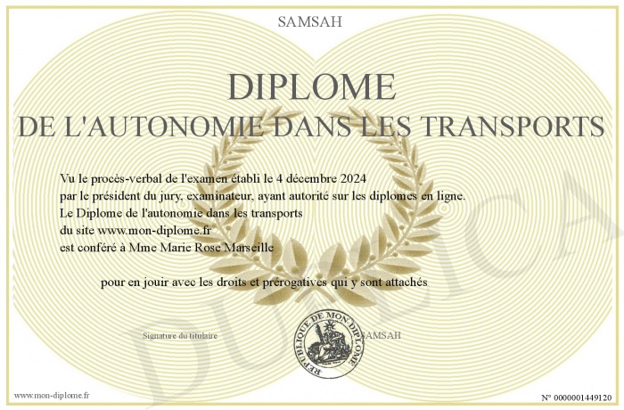 Envoyez par email votre Diplôme de l'autonomie dans les transports personalisé