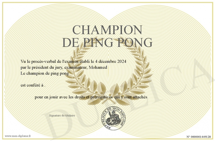 Envoyez par email votre champion de ping pong personalisé