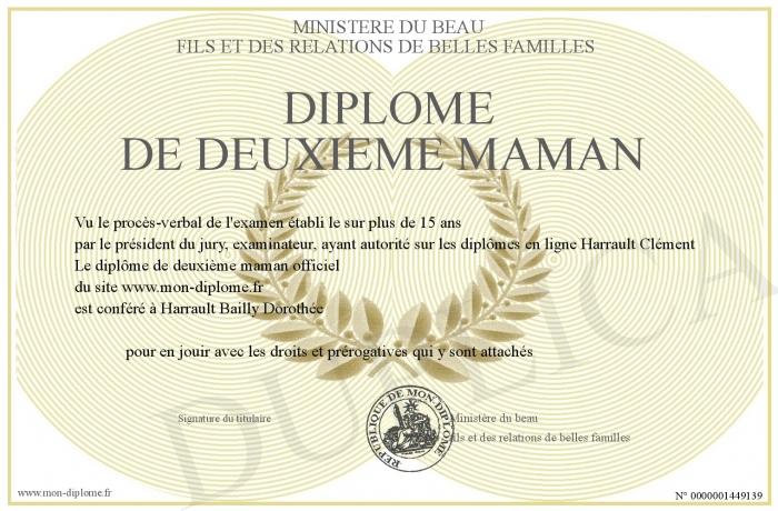 Envoyez par email votre Diplôme de Deuxième Maman personalisé