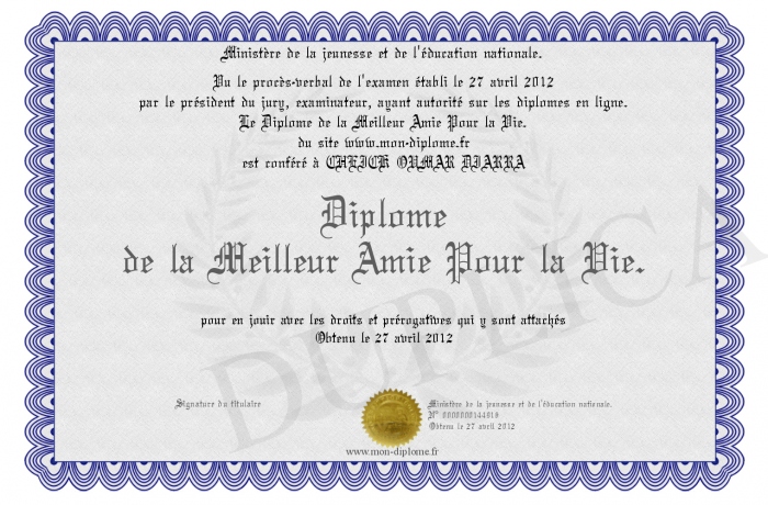 Envoyez par email votre Diplôme de la Meilleur Amie Pour la Vie. personalisé