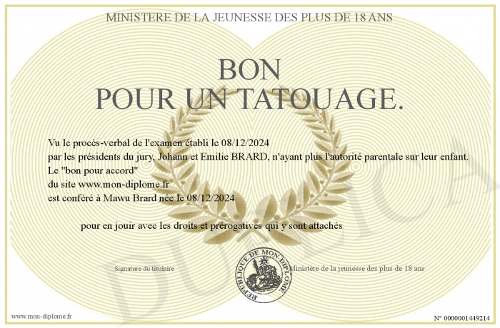 Envoyez par email votre bon pour un tatouage. personalisé