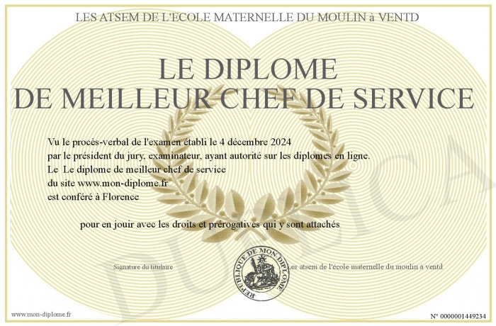 Envoyez par email votre Le diplôme de meilleur chef de service personalisé