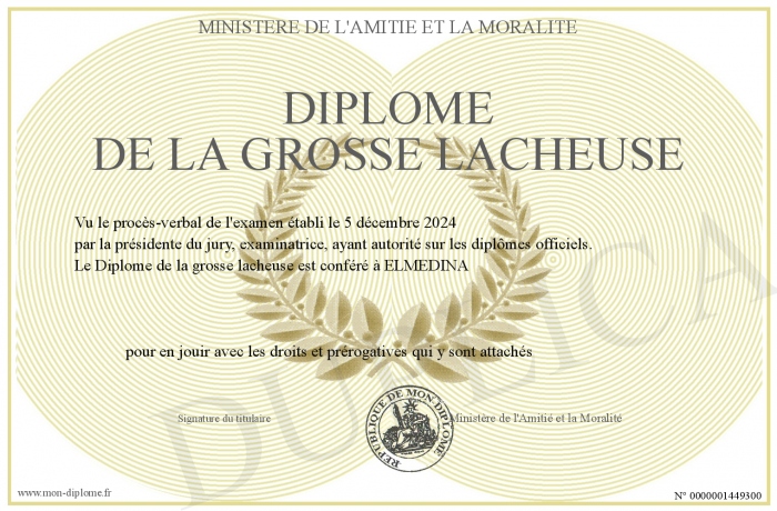 Envoyez par email votre Diplôme de la grosse lacheuse personalisé