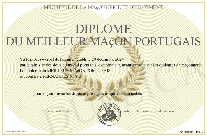 Envoyez par email votre Diplôme du MEILLEUR MAçON PORTUGAIS personalisé