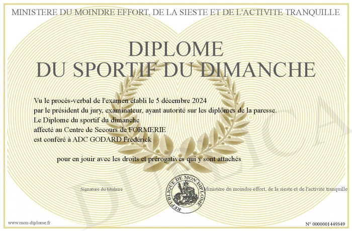Envoyez par email votre Diplôme du sportif du dimanche personalisé