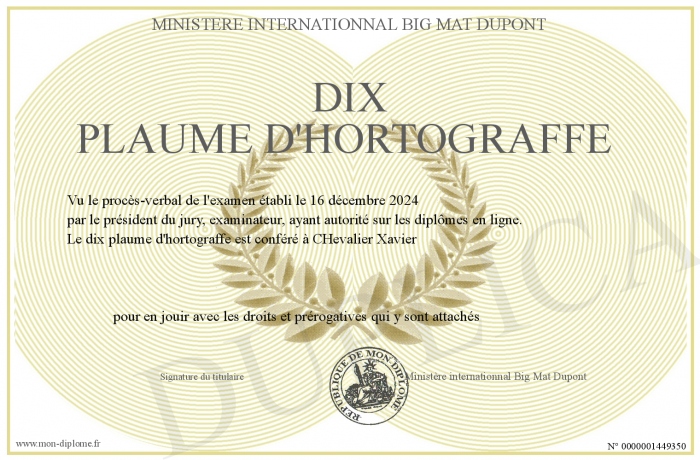 Envoyez par email votre Dix plaume d'hortograffe personalisé