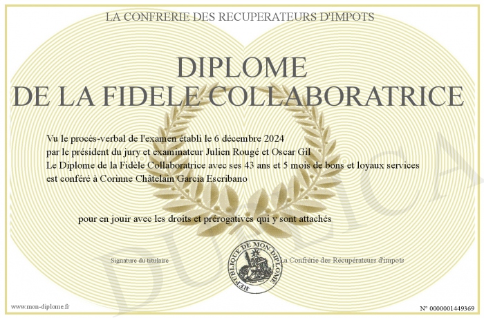 Envoyez par email votre Diplôme de la Fidèle Collaboratrice personalisé