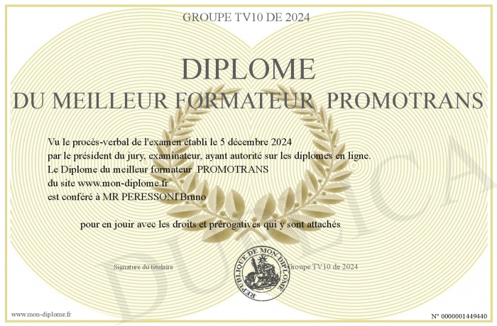 Envoyez par email votre Diplôme du meilleur formateur PROMOTRANS personalisé