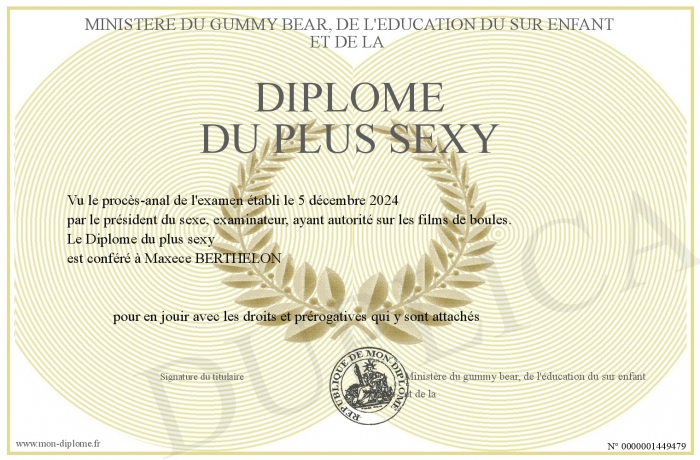 Envoyez par email votre Diplôme du plus sexy personalisé