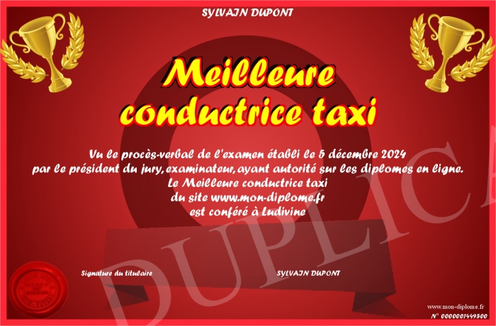 Envoyez par email votre Meilleure conductrice taxi personalisé