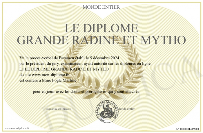 Envoyez par email votre LE DIPLOME GRANDE RADINE ET MYTHO personalisé
