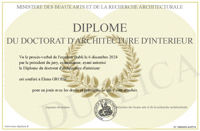 Envoyez par email votre Diplôme du doctorat d'architecture d'intérieur personalisé