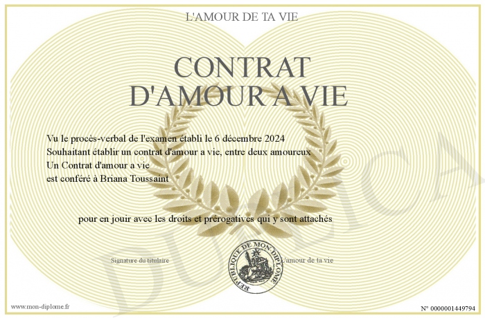 Envoyez par email votre Contrat d'amour a vie personalisé