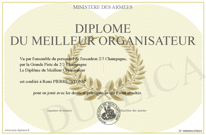 Envoyez par email votre Diplôme du meilleur organisateur personalisé