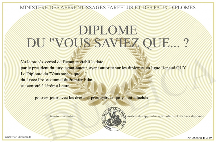 Envoyez par email votre Diplôme du -Vous saviez que... ? personalisé