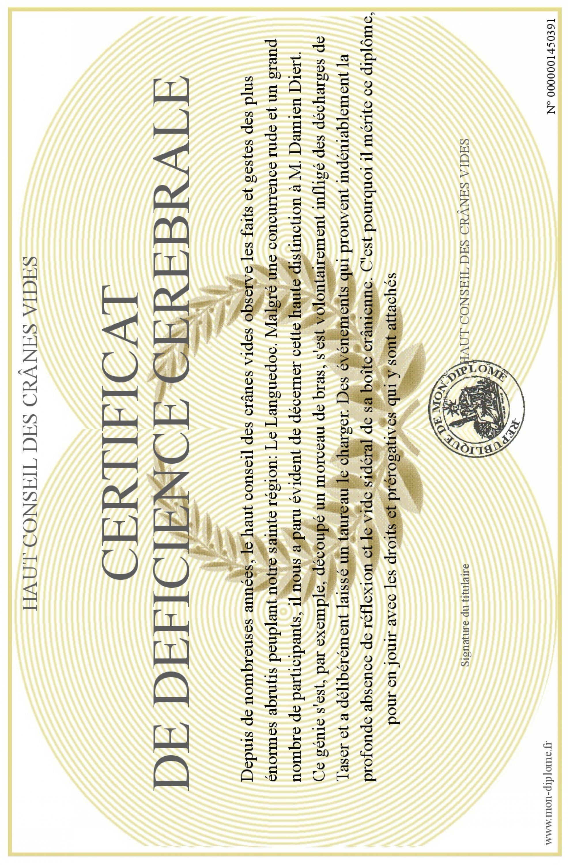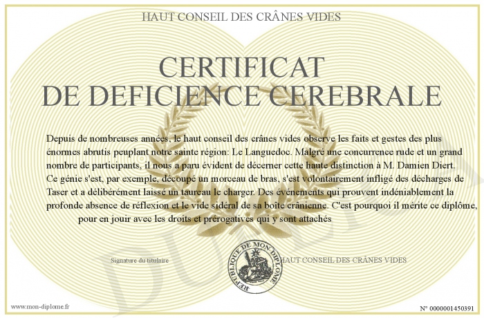 Envoyez par email votre Certificat de déficience cerebrale personalisé