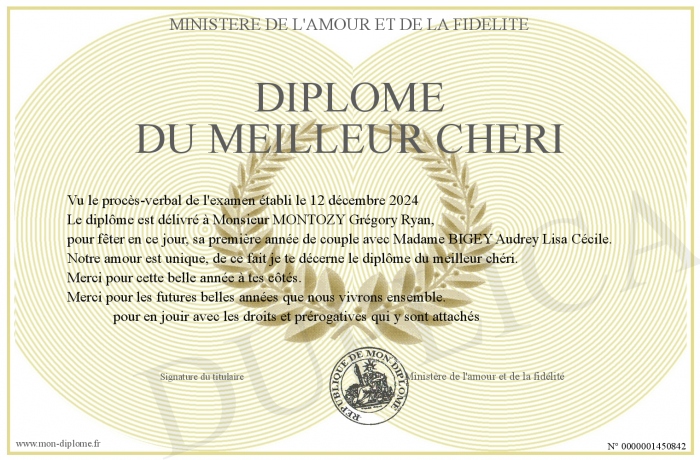 Envoyez par email votre Diplôme du meilleur chéri personalisé