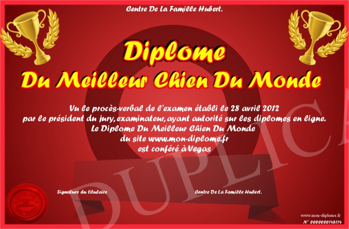 Envoyez par email votre Diplôme Du Meilleur Chien Du Monde personalisé
