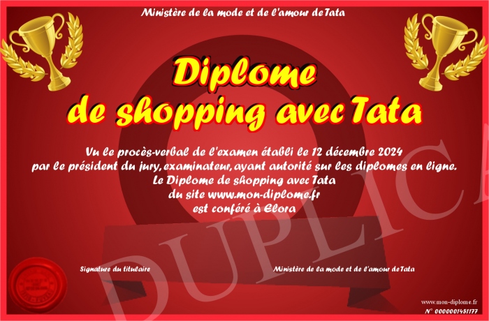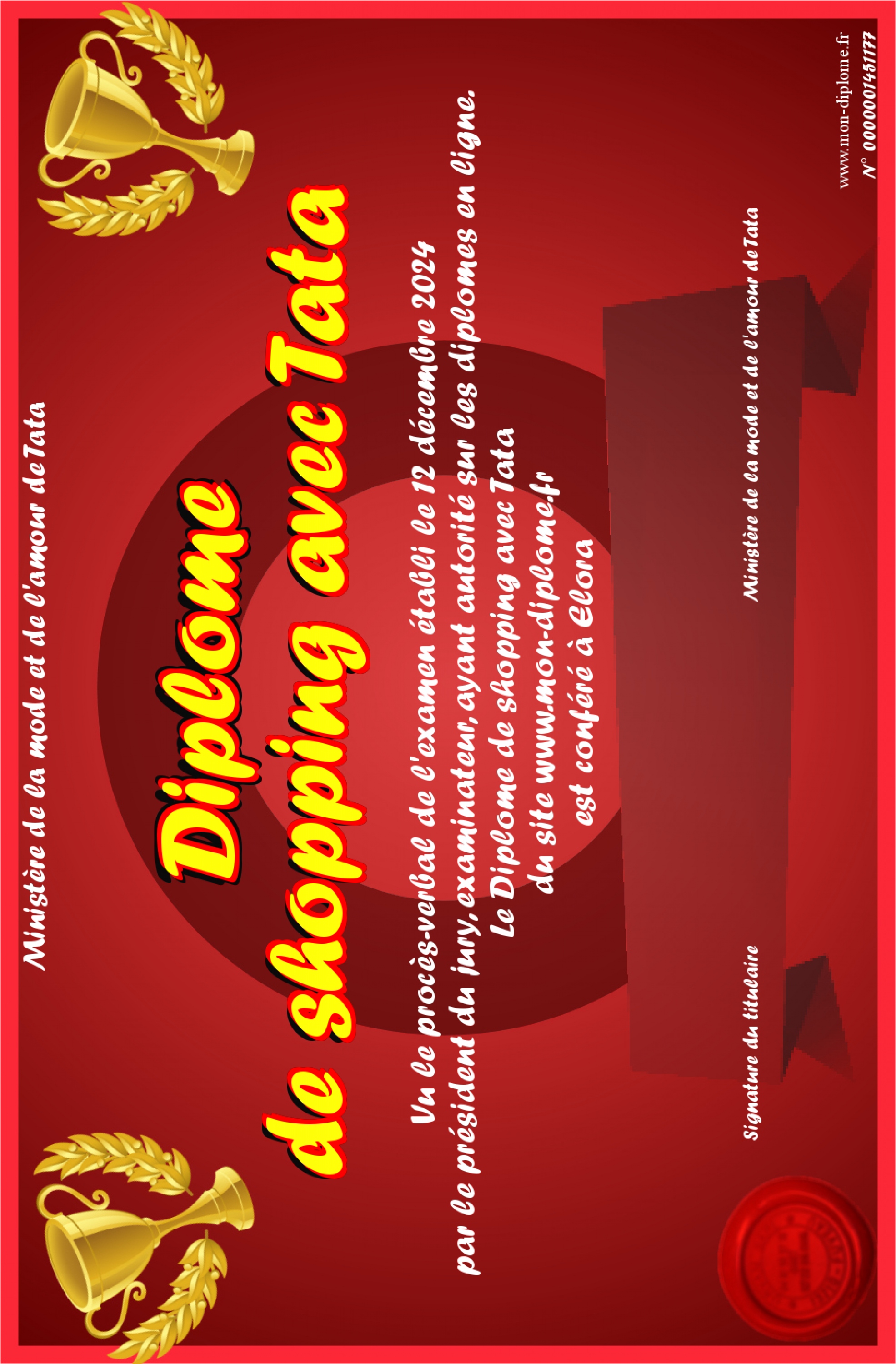 Envoyez par email votre Diplôme de shopping avec Tata personalisé