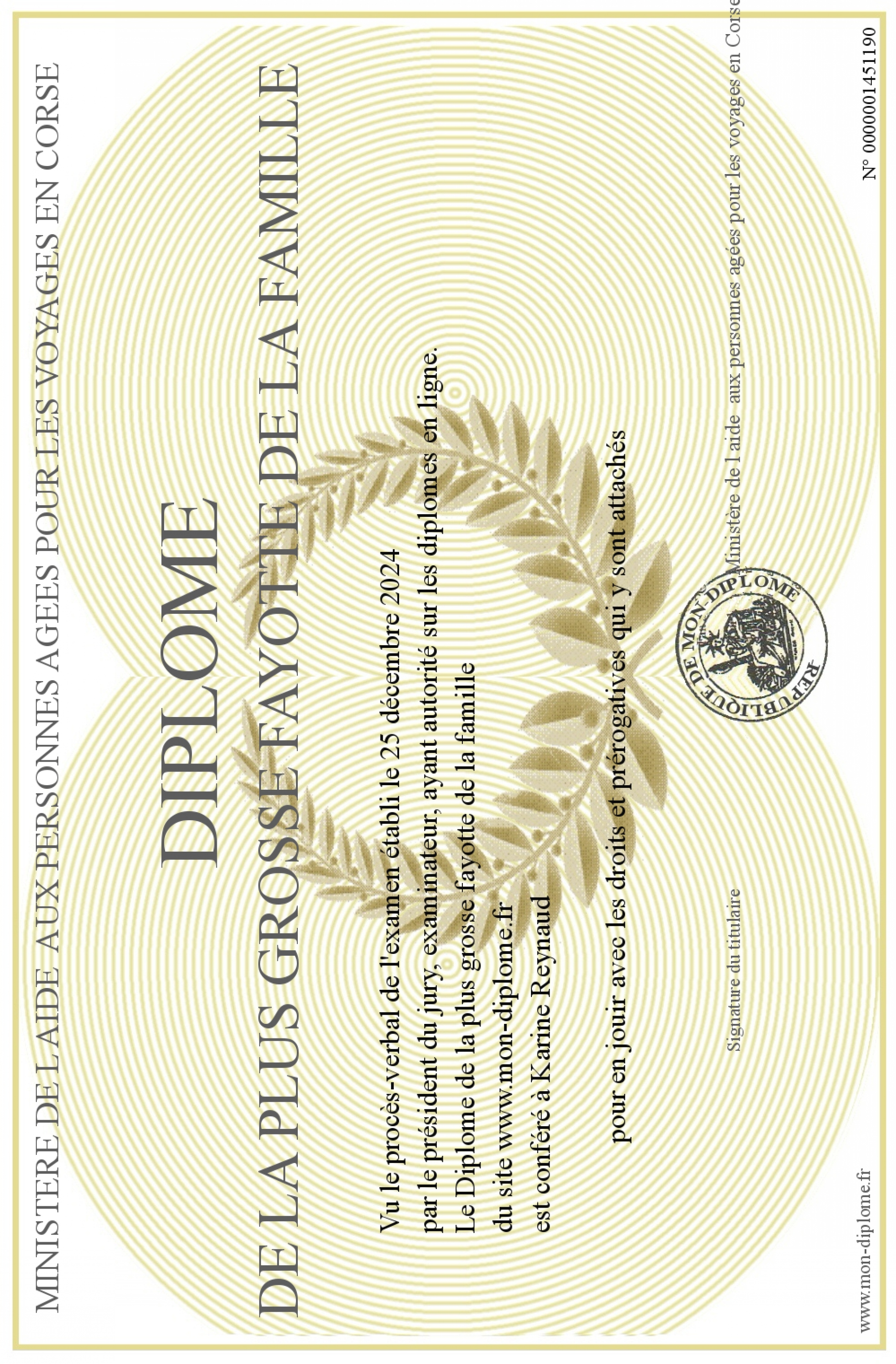Envoyez par email votre Diplôme de la plus grosse fayotte de la famille personalisé