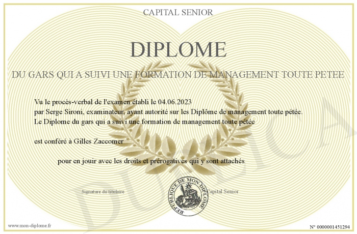 Envoyez par email votre Diplôme du gars qui a suivi une formation de management toute pétée personalisé