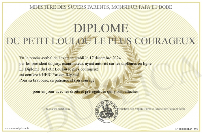Envoyez par email votre Diplôme du Petit Loulou le plus courageux personalisé