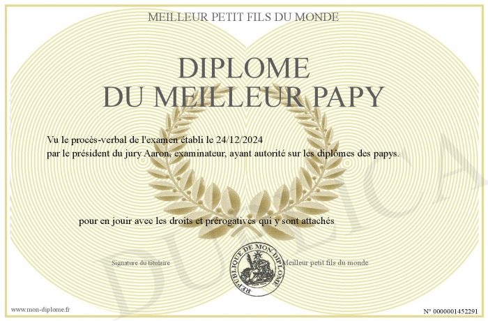 Envoyez par email votre Diplôme du meilleur papy personalisé