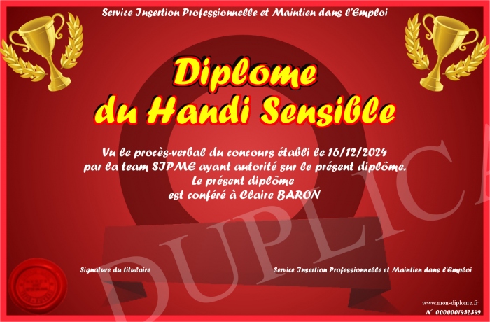 Envoyez par email votre Diplôme du Handi Sensible personalisé