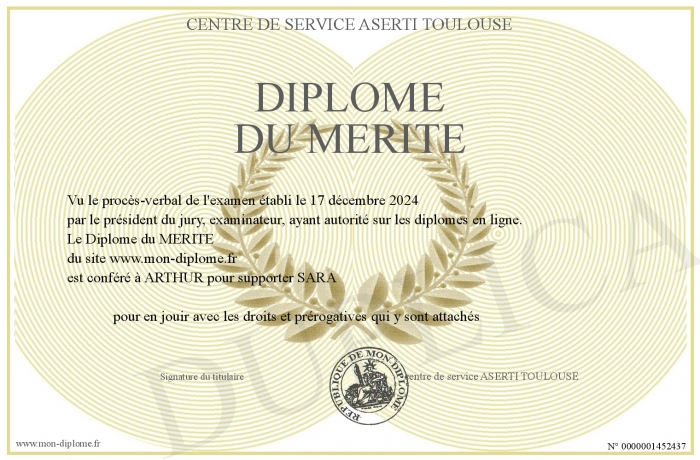 Envoyez par email votre Diplôme du MERITE personalisé