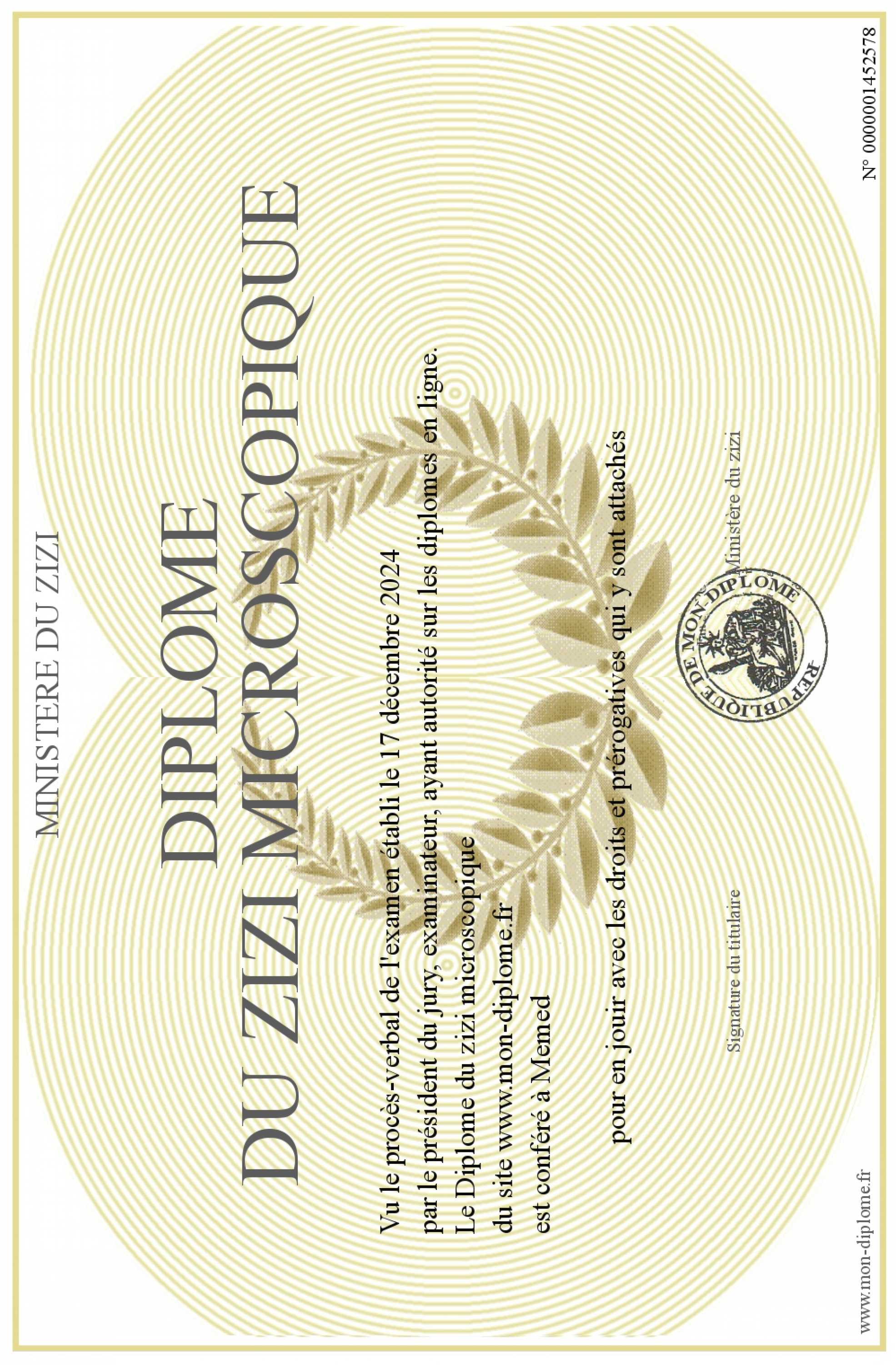 Envoyez par email votre Diplôme du zizi microscopique personalisé