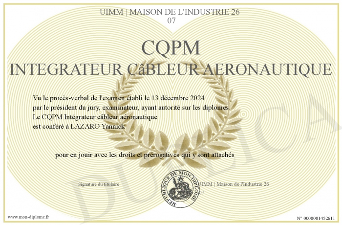 Envoyez par email votre CQPM Intégrateur câbleur aéronautique personalisé