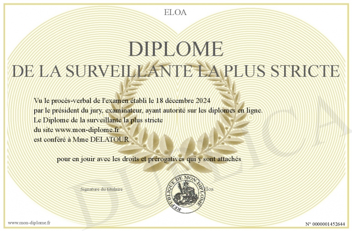 Envoyez par email votre Diplome de la surveillante la plus stricte personalisé