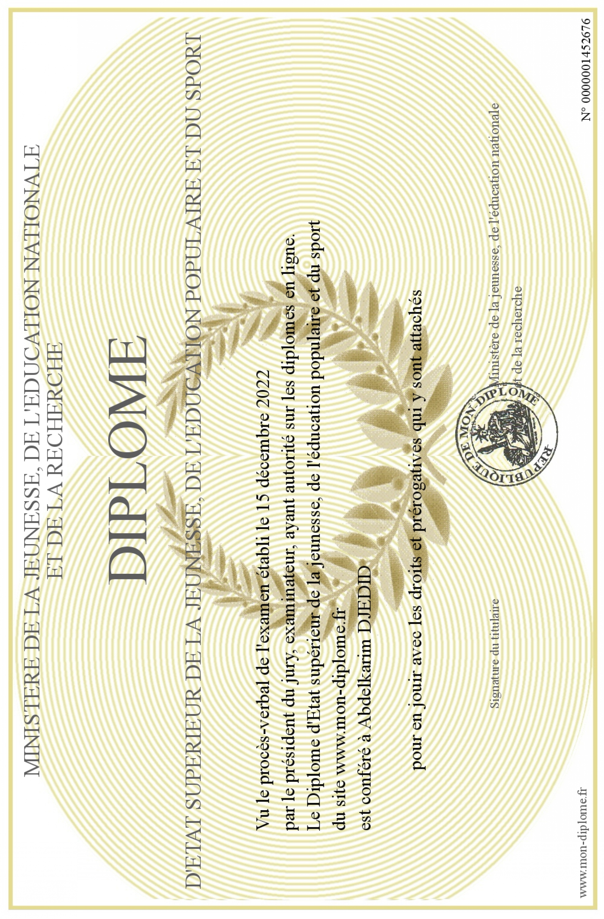 Envoyez par email votre Diplôme d'Etat supérieur de la jeunesse, de l'éducation populaire et du sport personalisé