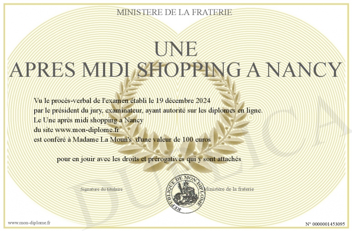 Envoyez par email votre Une après midi shopping a Nancy personalisé