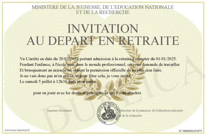 Envoyez par email votre Invitation au Départ en retraite personalisé