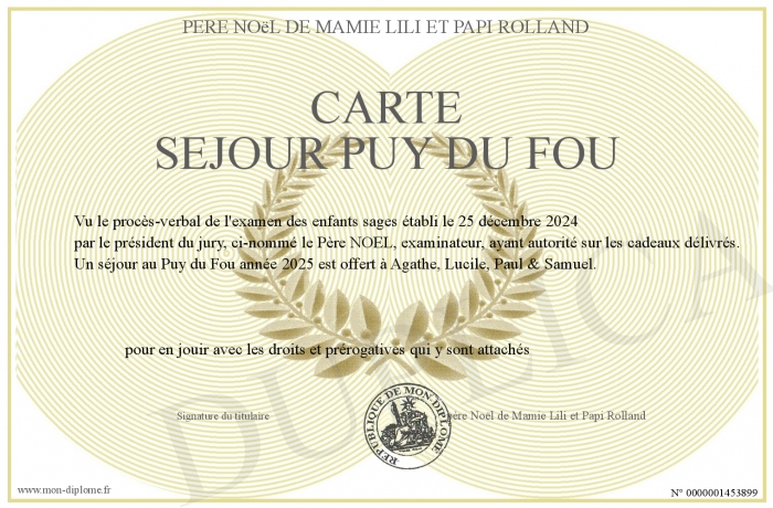 Envoyez par email votre Carte séjour Puy du Fou personalisé