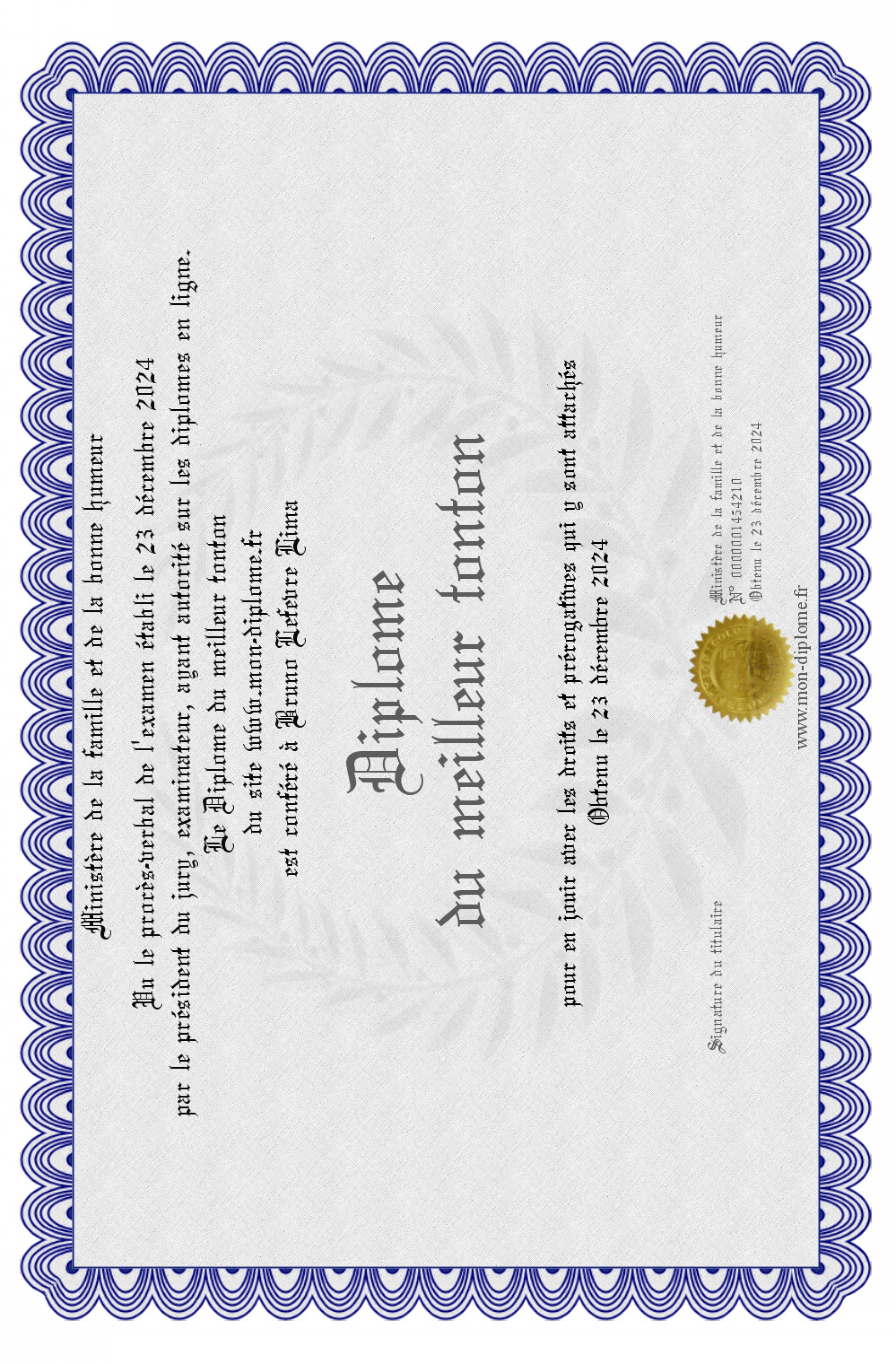 Envoyez par email votre Diplôme du meilleur tonton personalisé