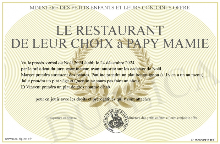 Envoyez par email votre Le restaurant de leur choix à Papy Mamie personalisé